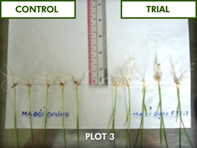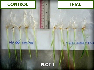 INCREASE IN ROOT MASS DICTATES THE INTAKE OF PLANT NUTRITION WHICH TRANSLATE TO HEALTHIER AND FIRMER PADDY STALKS. THIS IN RETURN INCREASES CROP YIELDS SIGNIFICANTLY. |