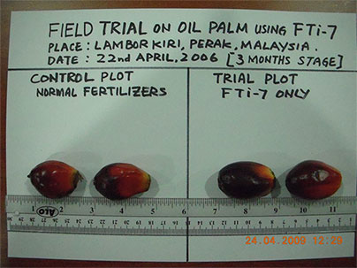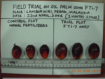 OBVIOUS DIFFERENCE IN SIZE, WEIGHT AND HIGHER FFB TONNAGE AFTER THREE (3) APPLICATIONS. |